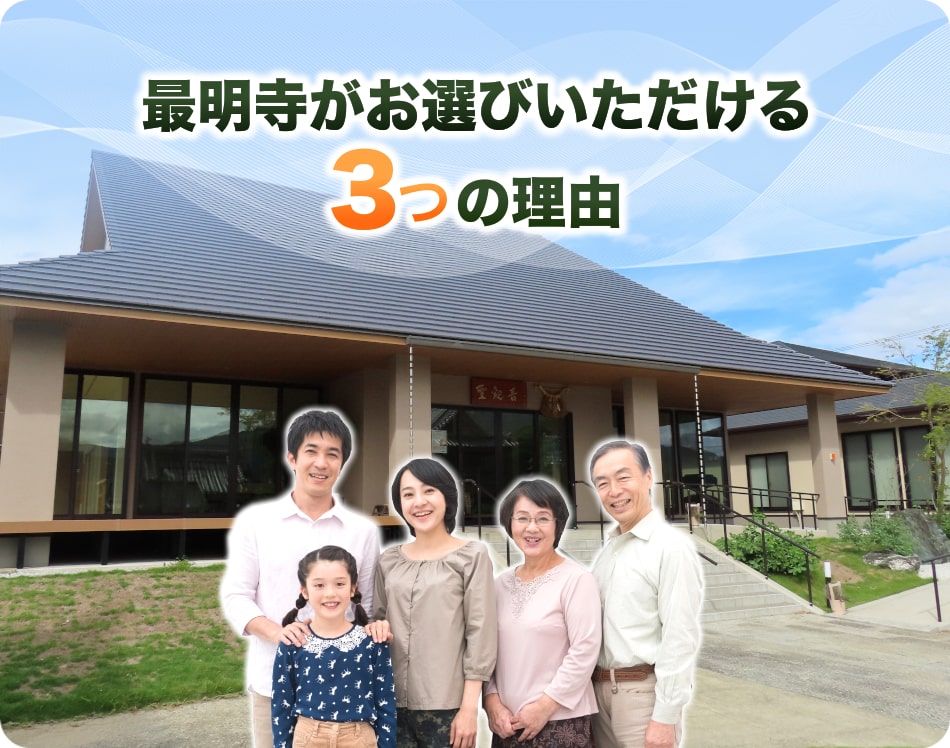 最明寺の永代供養墓は、ご利用される方の宗旨・宗派は問いません。寺院の永代供養墓でも宗派に関わらず、どんな方でもお申し込みいただけるのはお喜びいただいています。お寺の行事への参加も自由で、ご寄付を強要するようなこともございません。また、特許技術の耐震構造を採用している丈夫な永代供養墓であることもポイントです。丈夫で頑丈なお墓であること、古刹がお守りする安心感から、末永く安心してお任せできるとご相談いただいています。また最明寺は、最寄り駅のJR徳島線「穴吹駅」からお車で約8分、徳島自動車道「脇町出口」より約7分とお参りしやすい点も大変魅力的です。駐車場もとても広いので、安心してお車でお越しいただけますよ。